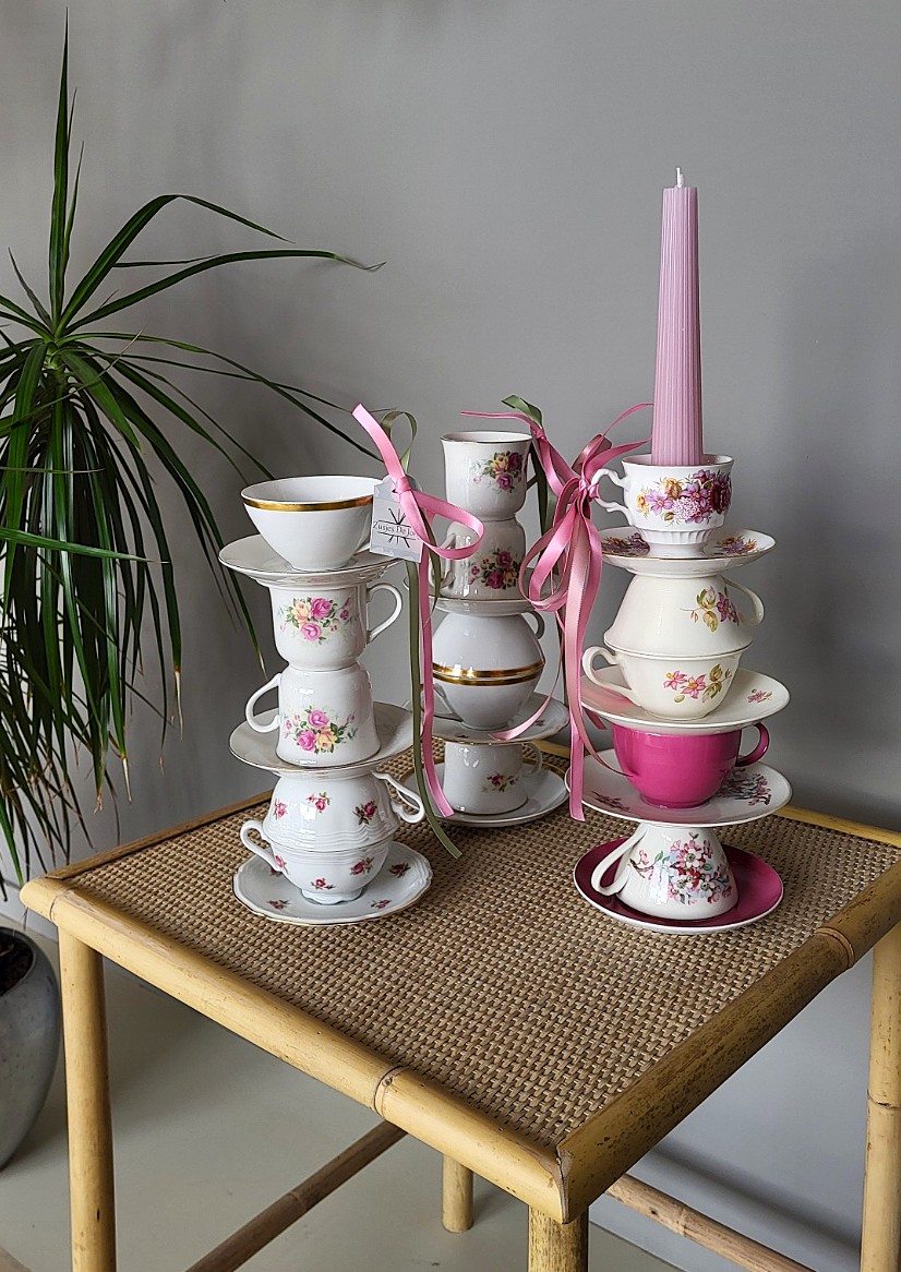 Met zoveel plezier struin ik op zoek naar de mooiste kopjes en schotels, en experimenteer ik om de leukste kandelaars samen te stellen. Elk stuk is uniek en een echte eyecatcher op de dinertafel. Dus van elk is er maar eentje!